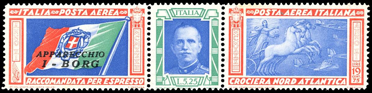 Lotto 833 - 1933 - 5,25 + 19,75 lire Trittico I-BORG, varietà "ciuffo" ...