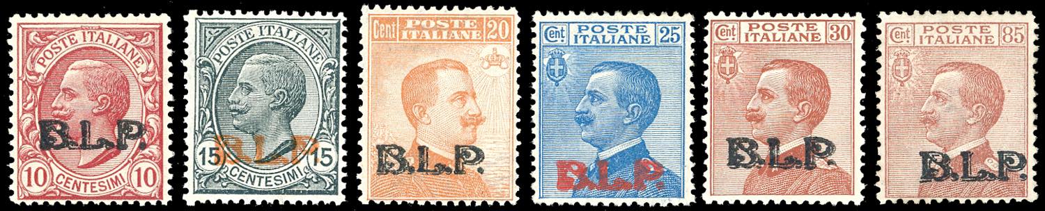 1923 - Soprastampati BLP del III tipo, serie completa (13/18), nuovi, gomma originale, ben centrati, perfetti. Cert. Ferrario.