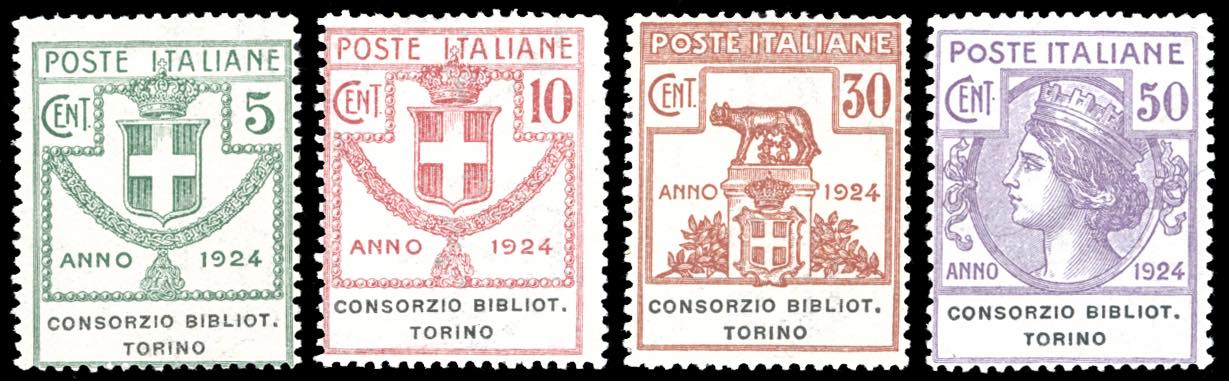 CONSORZIO BIBLIOT.TORINO 1924 - Serie completa (30/33), gomma originale integra, perfetti. Ferrario.