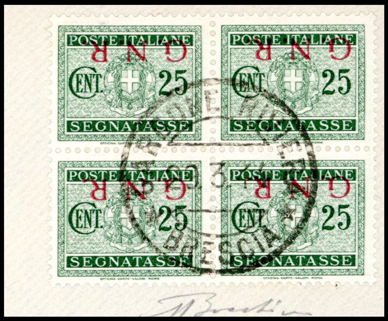 Lotto 1118 - 1944 - 25 cent. soprastampa G.N.R. capovolta di Brescia, I ...