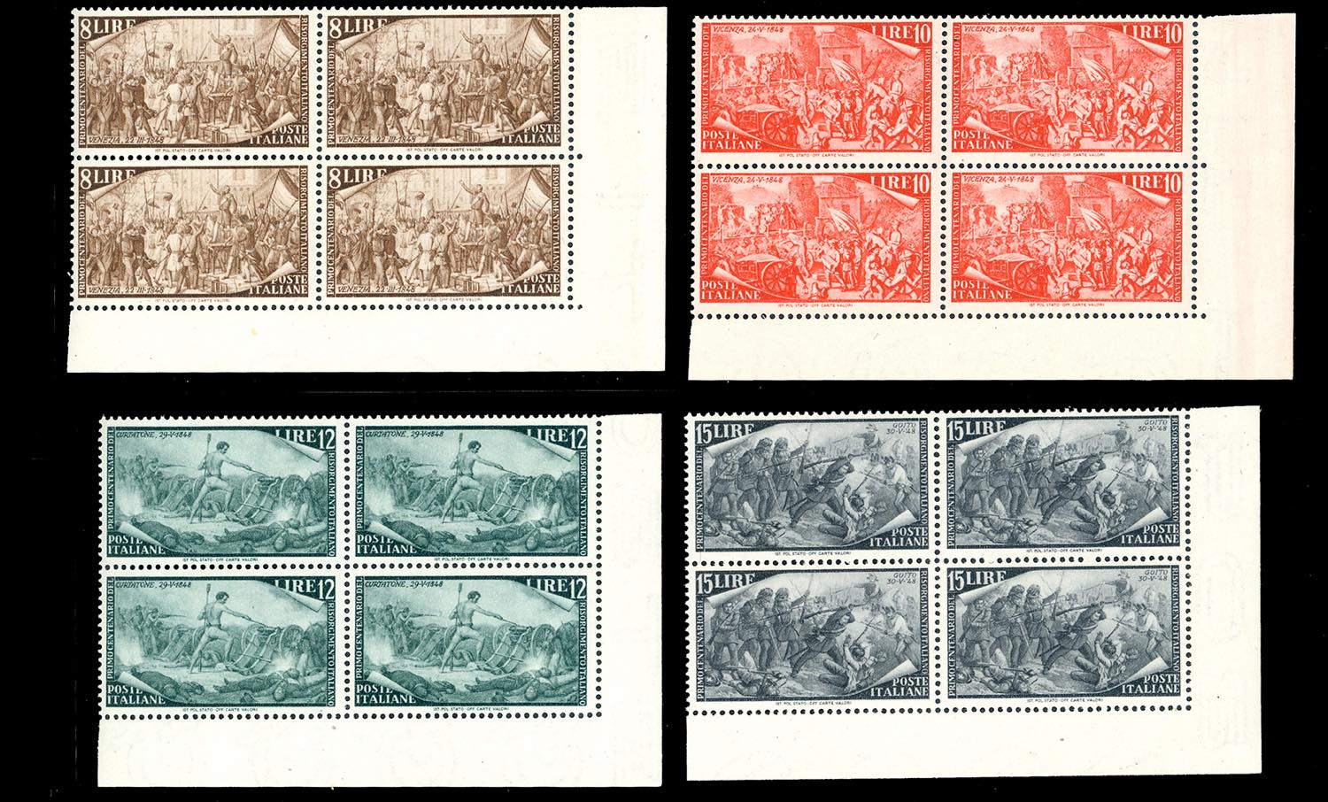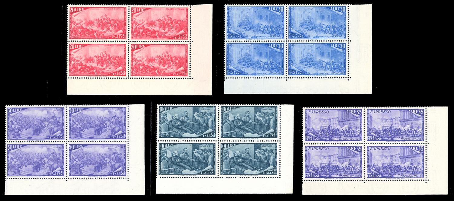 Lotto 1171 - 1948 - Risorgimento, serie completa (580/592+E), blocchi di ...