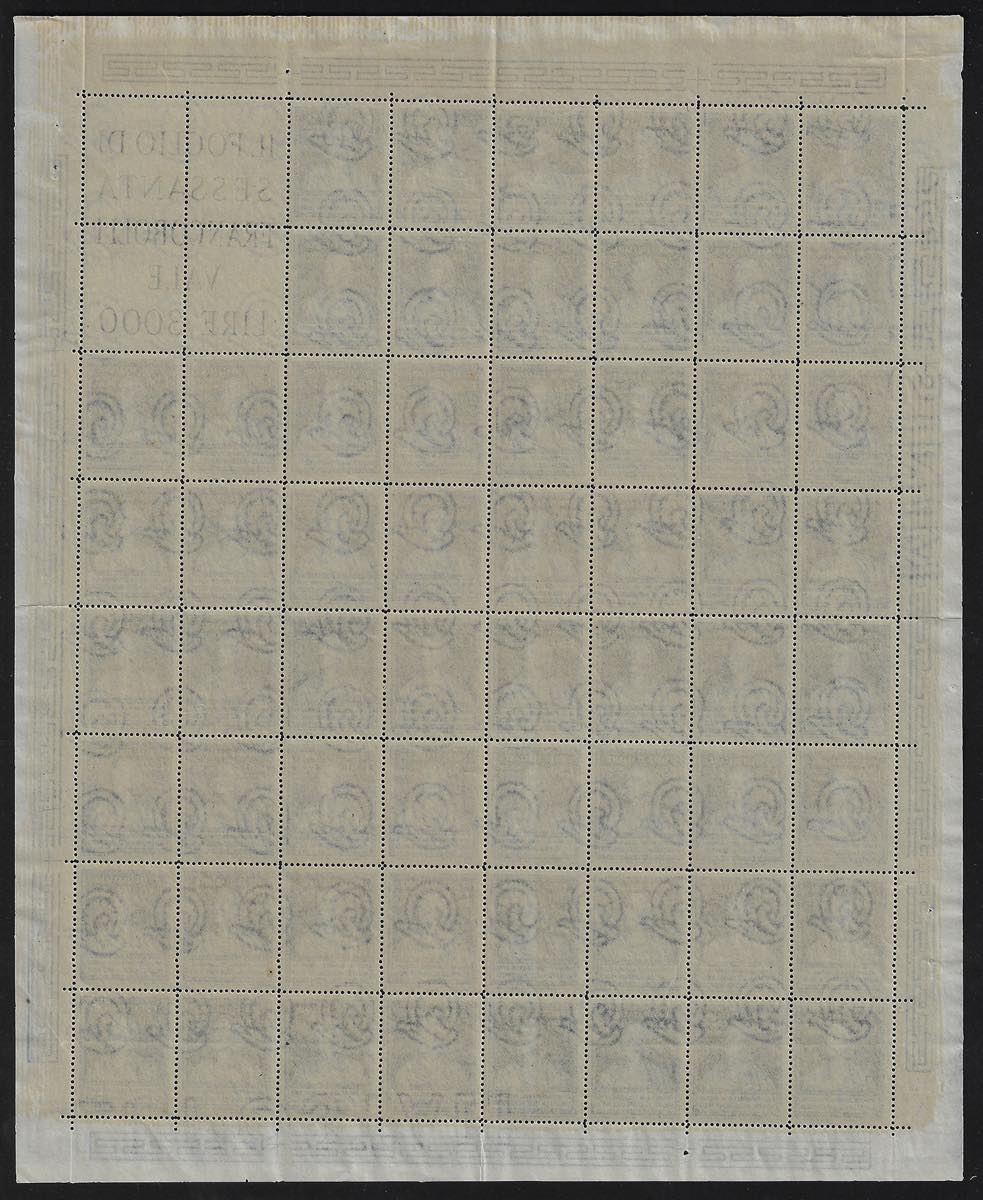Lotto 1180 - 1949 - 50 lire Volta (612), foglio di sessanta esemplari, ...