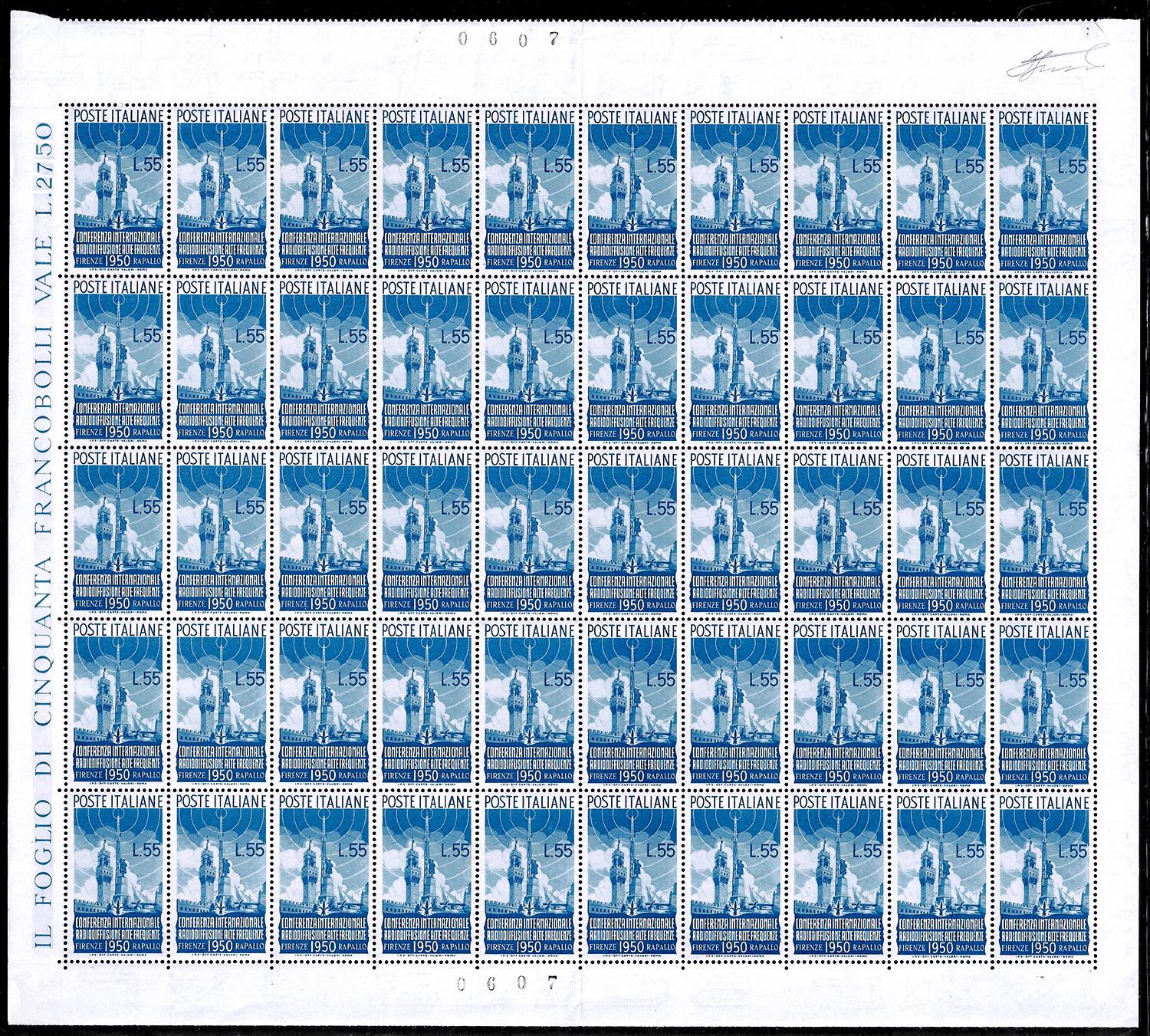 1950 - Radiodiffusione, serie completa (623/624), fogli nuovi di 50 esemplari, gomma originale integra, perfetti. Il 55 lire ottimamente ... Leggi tutto