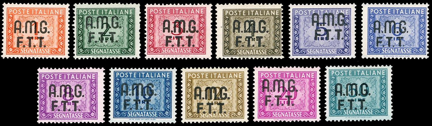 SEGNATASSE 1947/49 - Soprastampati su due righe (5/15), gomma integra, perfetti. Alti valori Ferrario.