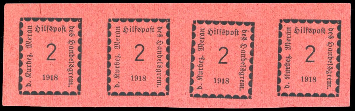 Lotto 1405 - MERANO 1918 - 2 h. rosa (1), striscia orizzontale di ...