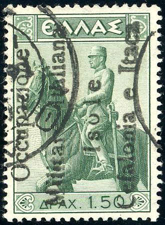CEFALONIA E ITACA - EMISSIONI DI ITACA 1941 - 1,50 d. Monumento equestre soprastampato (41), usato, perfetto. Raro. Mondolfo, A.Diena, cert. Raybaudi, Ferrario.