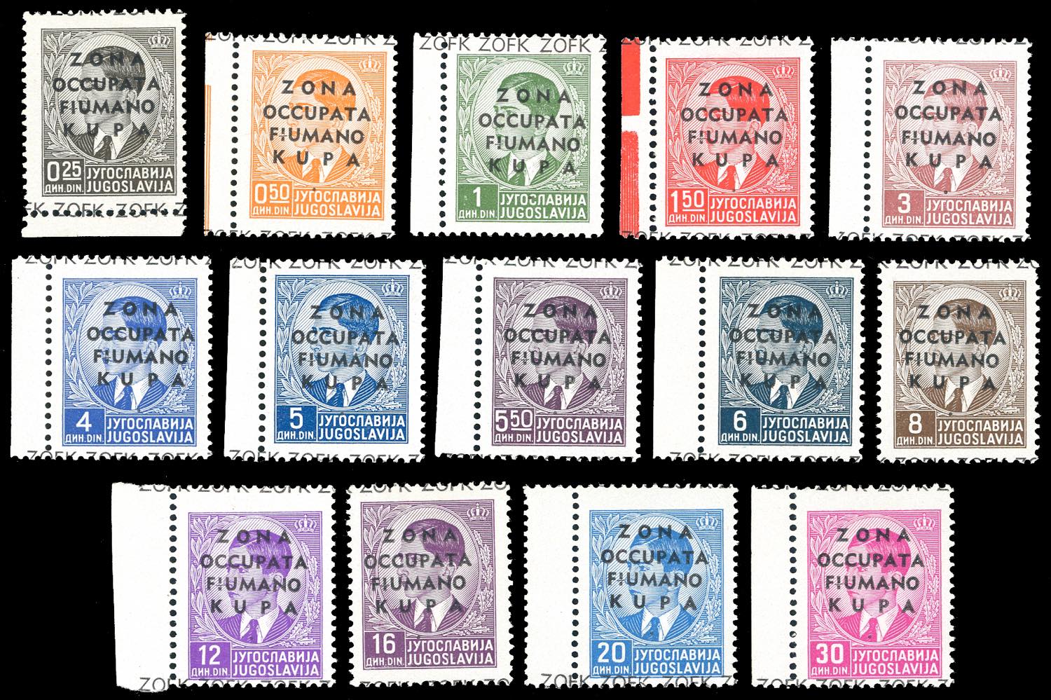 ZONA FIUMANO KUPA 1941 - Prima emissione soprastampata, serie completa (1/14), per lo più bordo di foglio, nuovi, gomma originale integra, ... Leggi tutto