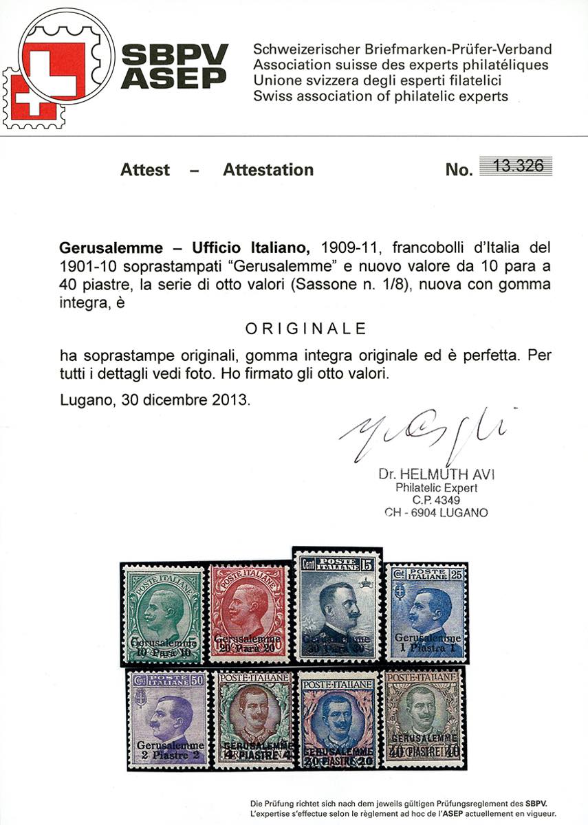 Lotto 1522 - GERUSALEMME 1909/11 - Soprastampati, serie completa (1/8), ...
