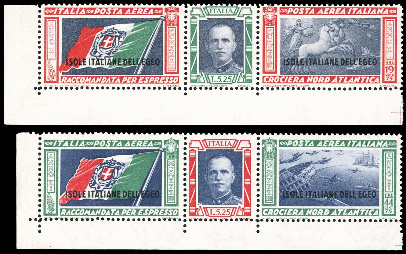 Lotto 1605 - POSTA AEREA 1933 - Trittici, serie completa (28/29), angolo ...