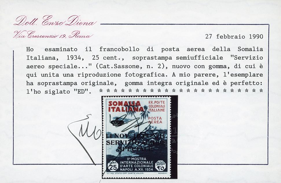 SERVIZIO AEREO 1934 - 25 cent. soprastampato "Servizio Aereo Speciale" (2), nuovo, gomma originale interga, perfetto. Ottima qualità. Cert. E.Diena.