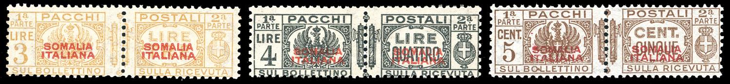 PACCHI POSTALI 1930/37 - Soprastampati in rosso, I tipo, i tre valori (66/67,71), gomma originale integra, perfetti. Ferrario.