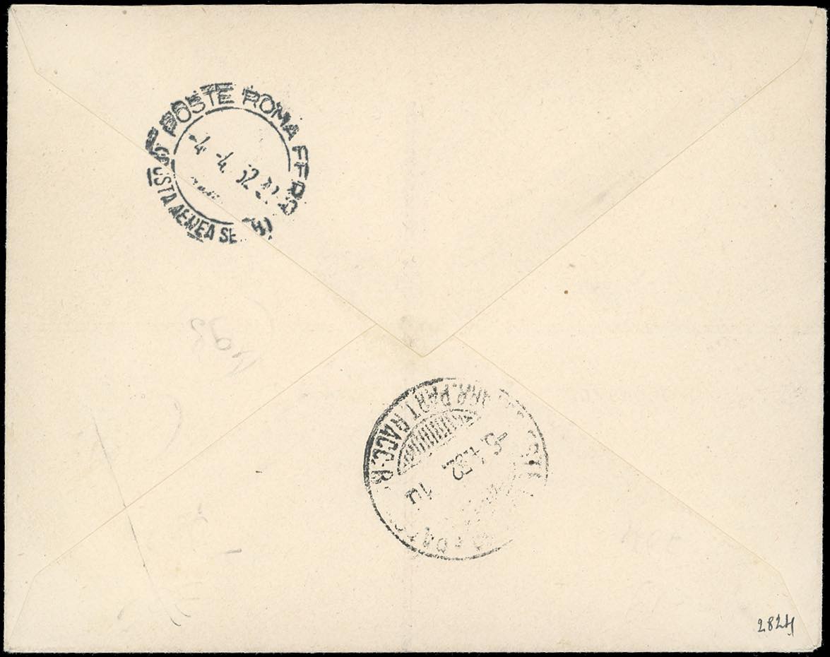 LIBIA REGNO INDIPENDENTE 1952 - Emissione per il Fezzan, 2 f. su 2 m., 4 f. su 4 m., 8 f. su 8 m., 10 f. su 10 m., 48 f. su 50 m. (14/17,20), perfetti, su aerogramma raccomandato da Ghadames 3/4/1952 per Trieste, bollo di arrivo al verso. Grande rarità dell'emissione. Cert. Ferrario.
