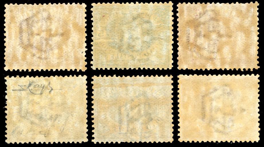 1894/99 - Cifra e Stemma, serie completa (26/31), discreta centratura, gomma originale integra, perfetti. Cert. Raybaudi per l'1 lira oltremare.