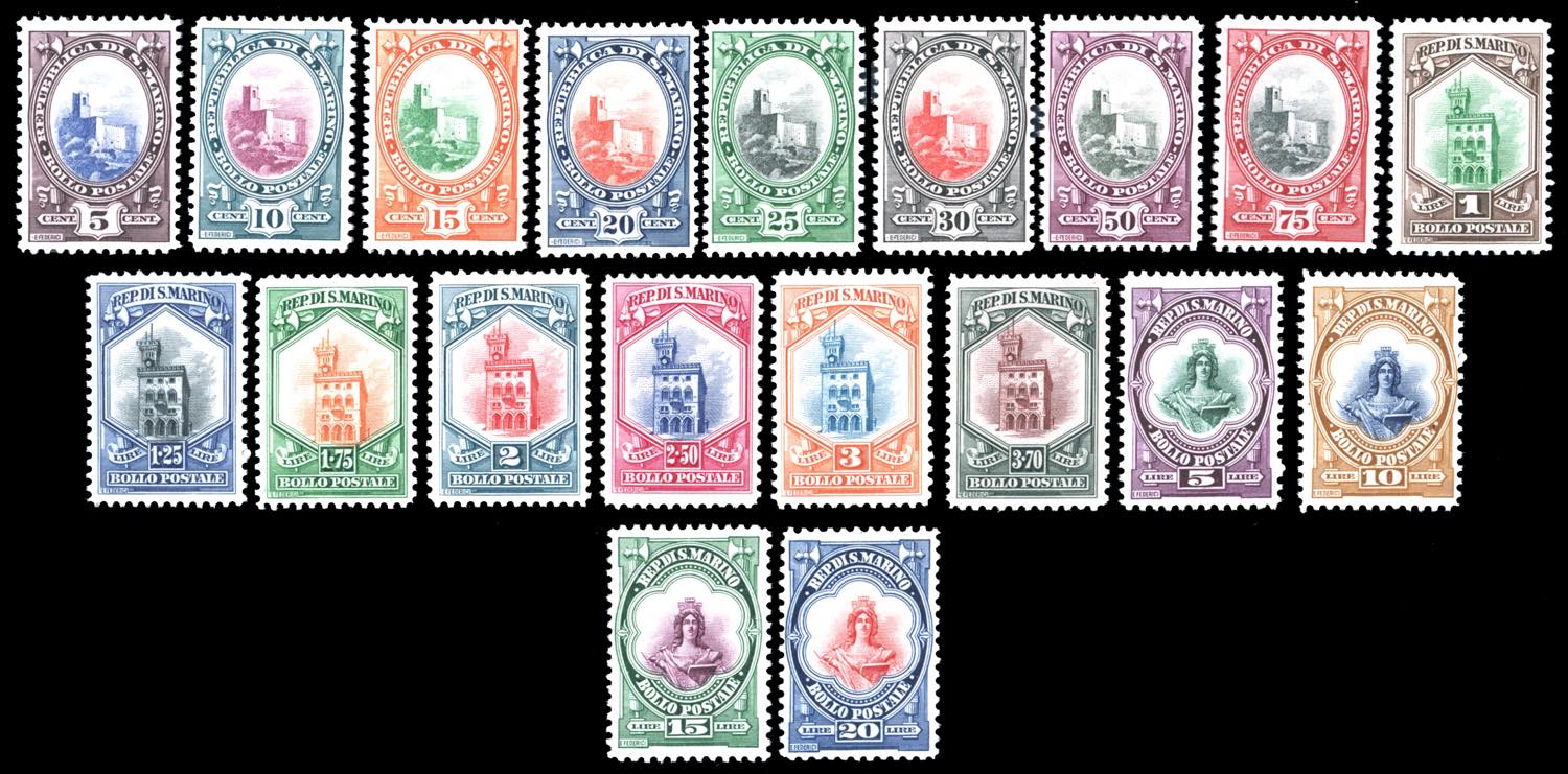 1929/35 - Veduta, Palazzo del Consiglio, Libertà, serie completa (141/158), gomma originale integra, perfetti e molto freschi. Cert. Sorani per l'alto valore.