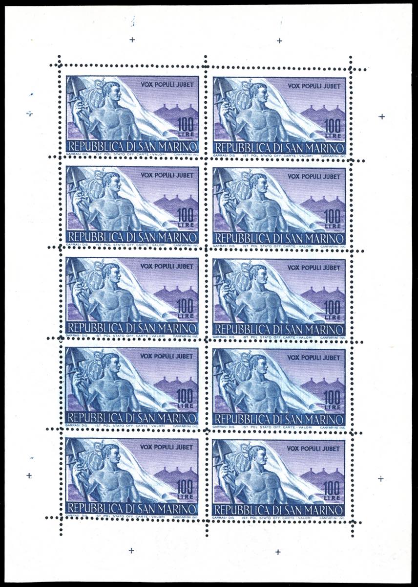 1948 - 100 lire Lavoratori, minifoglio (9), senza la consueta piega, nuovo, gomma originale integra, perfetto. Raro e di ottima qualità. ... Leggi tutto
