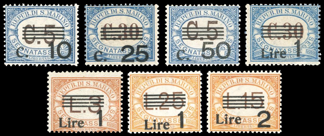 1936/39 - Soprastampati, serie completa (47/53), gomma originale integra, perfetti. Chiavarello, Ferrario.