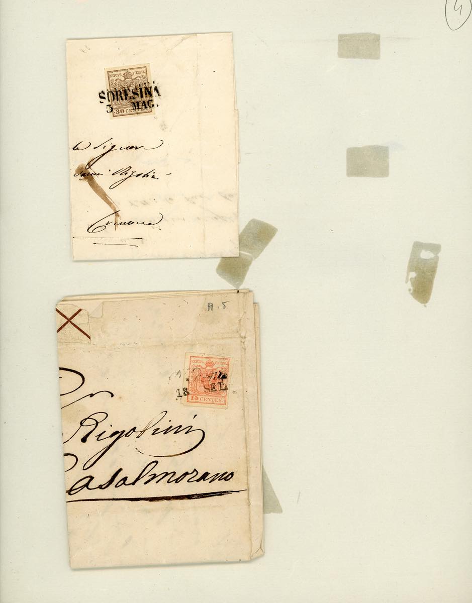 LOMBARDO VENETO 1850/1864 - Collezione di francobolli usati del periodo, con tre lettere, su fogli d'album. Notate alcune interessanti presenze, alto valore di catalogo.