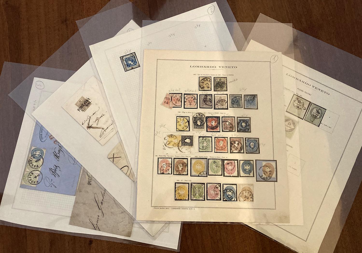 LOMBARDO VENETO 1850/1864 - Collezione di francobolli usati del periodo, con tre lettere, su fogli d'album. Notate alcune interessanti ... Leggi tutto