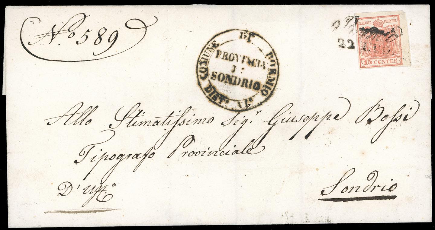 LOMBARDO VENETO 1851/1853 - Tre lettere affrancate con annullo di Bormio.