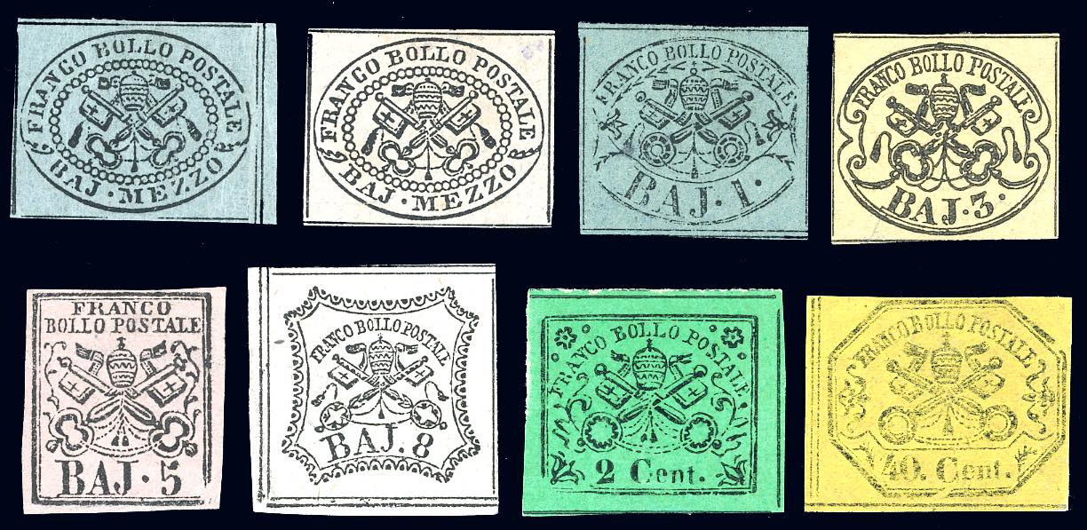 STATO PONTIFICIO 1852/1867 - Bell'insieme di otto esemplari differenti, nuovi, con gomma originale o senza gomma, perfetti, ottima qualità. Firmati Ferrario.