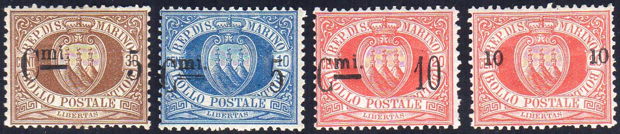 1892 - Soprastampati (8/11), discreta centratura, gomma originale, perfetti. Cert. Diena.