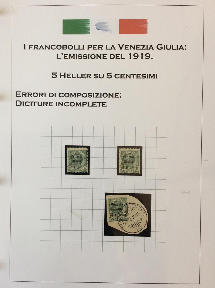 TERRE REDENTE VENEZIA GIULIA 1918/1919 - Collezione di varietà, montata in fogli d'album artigianali, in un raccoglitore. Notate diverse ... Leggi tutto