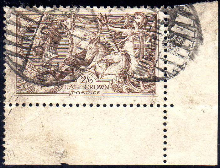 GRAN BRETAGNA 1913 - 2/6 Cavalli marini, tiratura Waterlow (153), angolo di foglio, usato, perfetto.