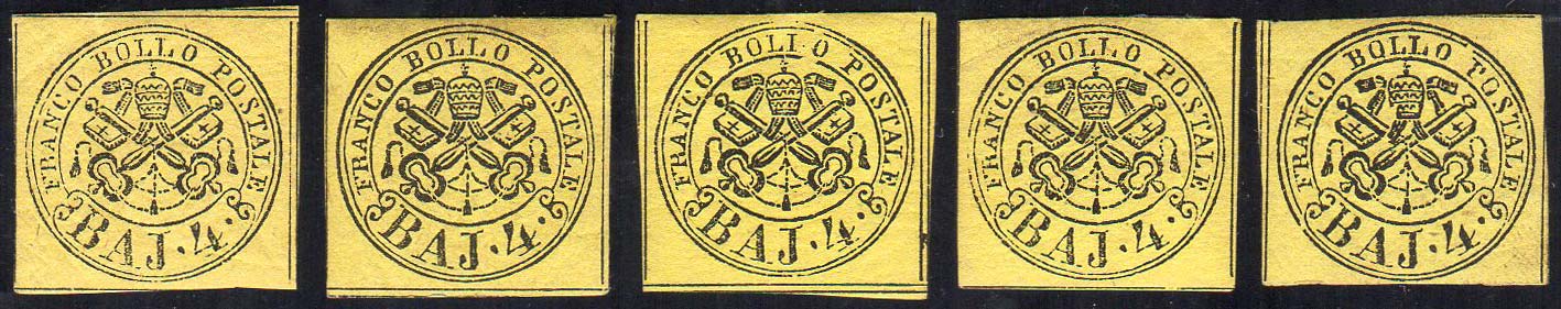 Lotto 652 - 1864 - 4 baj giallo (5A), 5 esemplari, gomma originale, ...