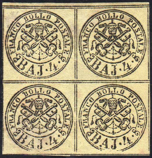 Lotto 656 - 1864 - 4 baj giallo chiaro (5Ab), blocco di quattro bordo ...