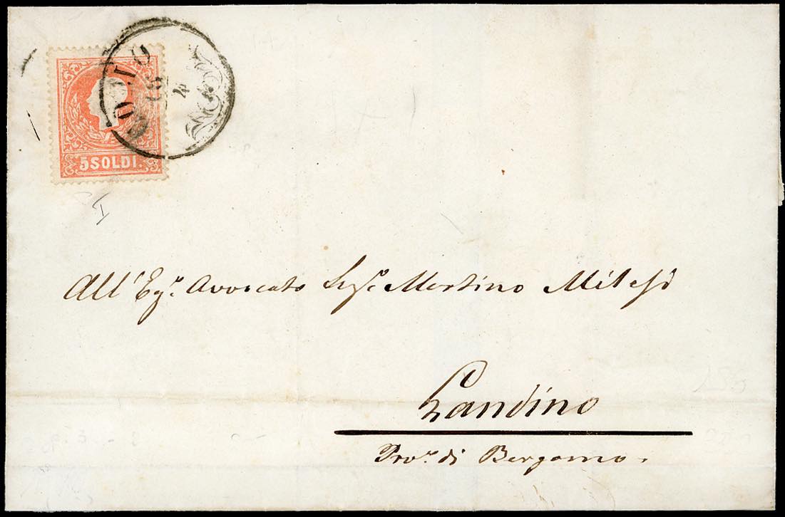 COMO, C0 I tipo punti 7 - 5 soldi (25), perfetto, su sovracoperta di lettera del 16/4/1859 per Gandino.