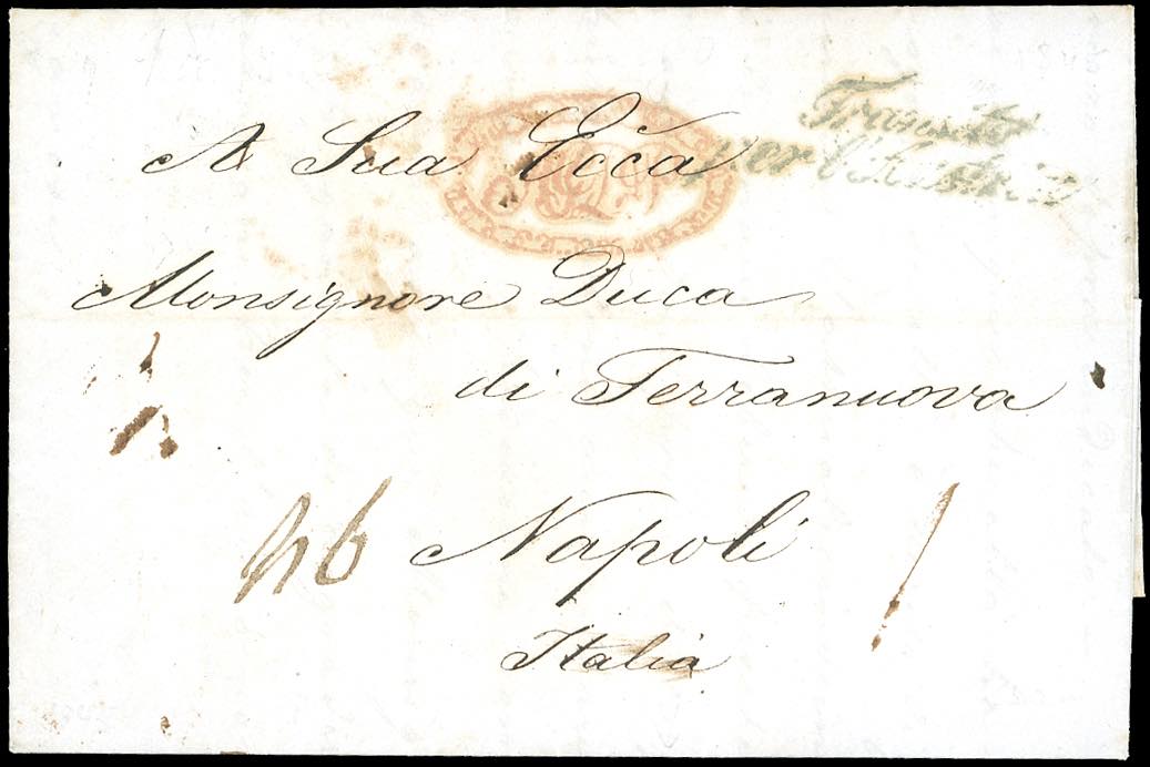 INCOMING MAIL RUSSIA 1845 - Lettera prefilatelica da San Pietroburgo 10/1/1845 a Napoli, sul fronte il bollo di transito austriaco e la tassa di 46 grana. Bella e non comune.
