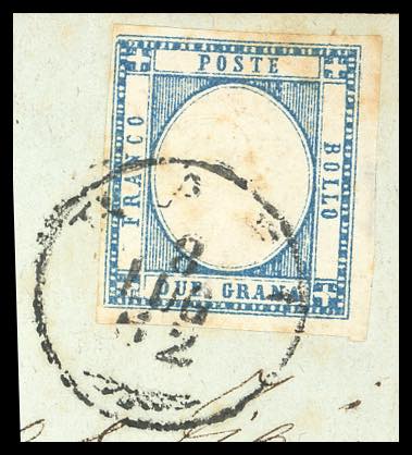 BARI, cerchio piccolo con fregio a tralcio punti R1 - 2 grana (20), perfetto, su sovracoperta di lettera del 8/7/1862 per Napoli. Molto ... Leggi tutto