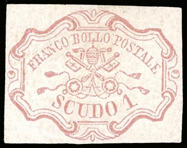 Lotto 501 - 1852 - 1 scudo rosa carminio (11), gomma originale, ...