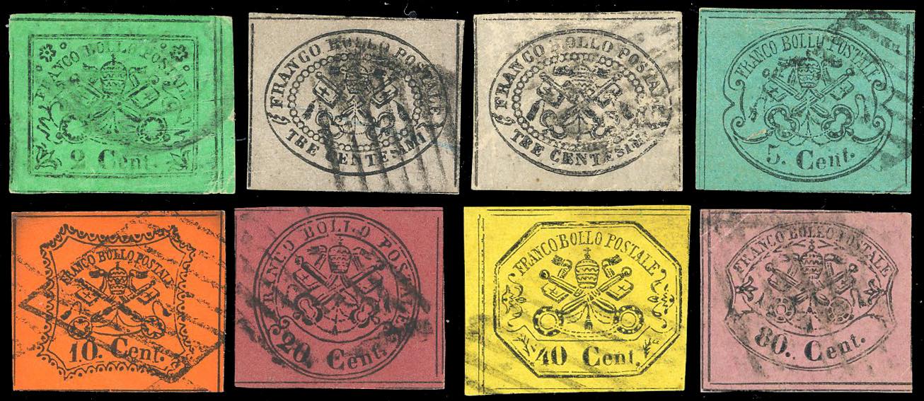 1867 - Seconda emissione, serie completa di otto valori (13/20), usati, buono/ottimo stato. I valori principali firmati da noti periti.