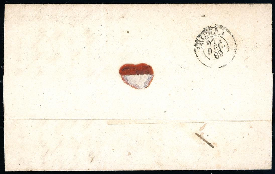 GUARCINO, FD nero punti 13 - 10 cent. (26c), ottimo stato, su lettera del 24/12/1869 per Roma, transito di Frosinone sul fronte. ... Leggi tutto