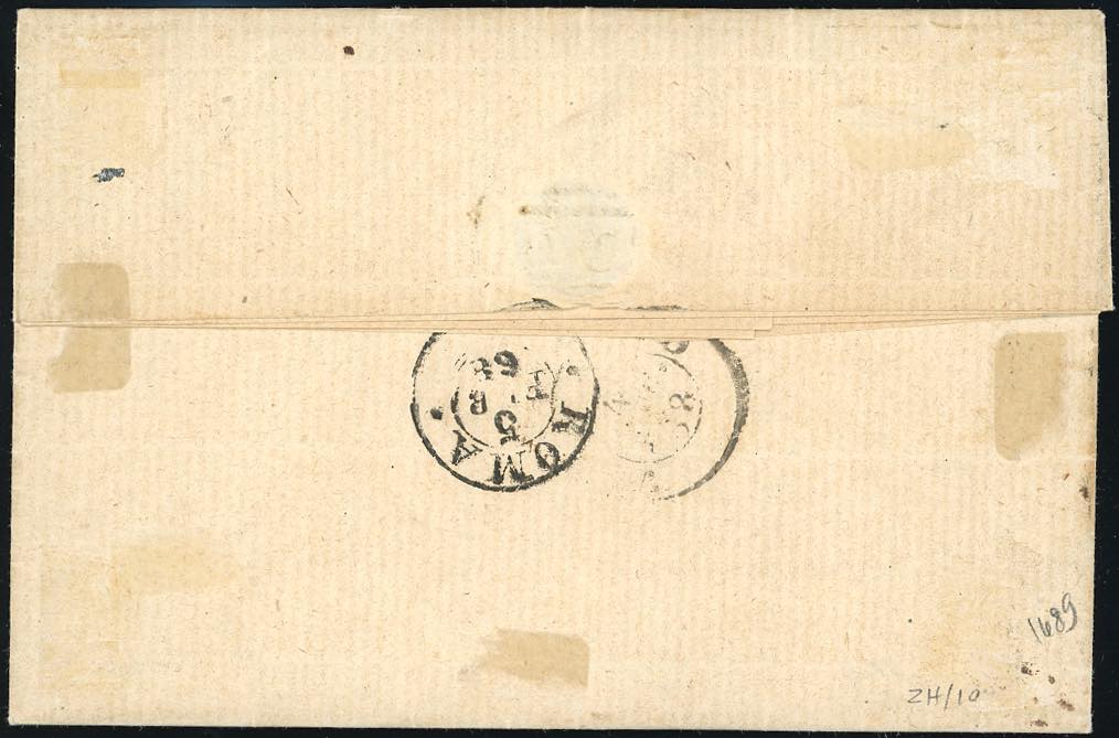 MONTEFIASCONE, SD punti 11 - 5 cent. (16), coppia, perfetta, su lettera del 3/2/1868 per Roma. Cert. Avi.