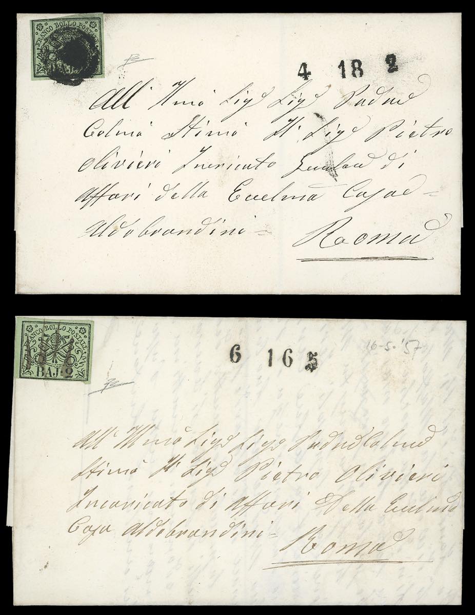 Lotto 614 - ROMA-FRASCATI - Due lettere affrancate con 2 baj (3), ...
