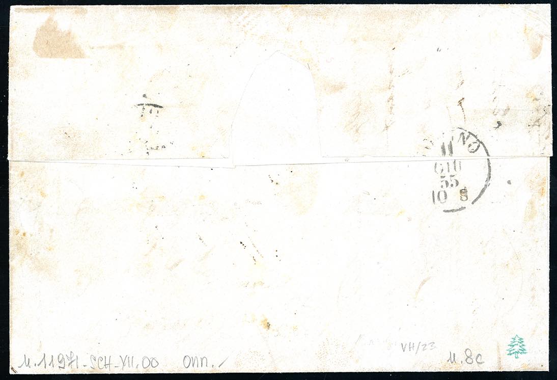 1855 - 20 cent. indaco (8c), coppia orizzontale, perfetta, su lettera di doppio porto da Genova 11/6/1855 a Torino. Grioni, A.Diena, ... Leggi tutto