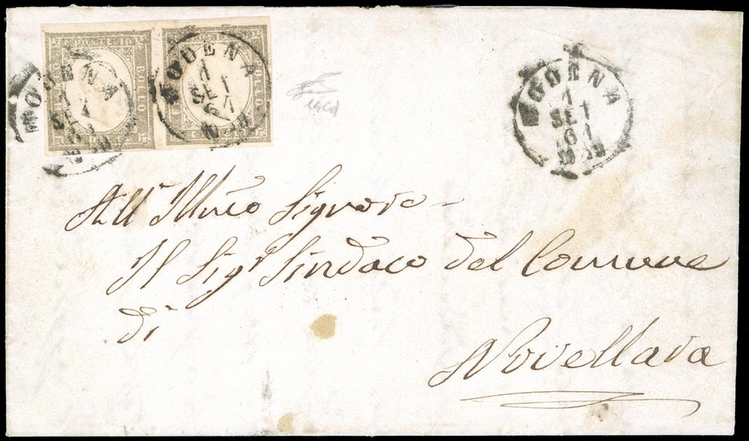 Lotto 720 - 1861 - 10 cent. grigio (14Cd), coppia, perfetta su lettera ...