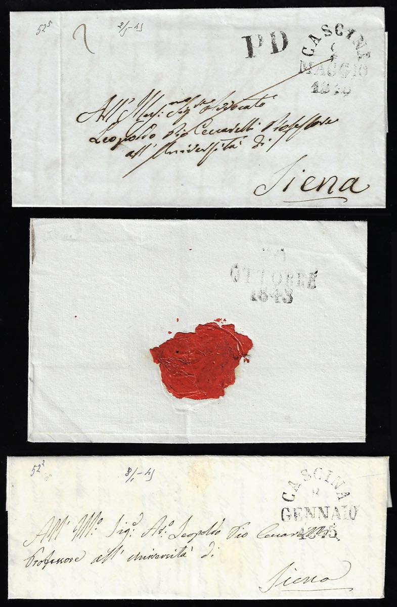 Lotto 955 - 1843/1845 - Tre prefilateliche da Cascina, con bolli di ...
