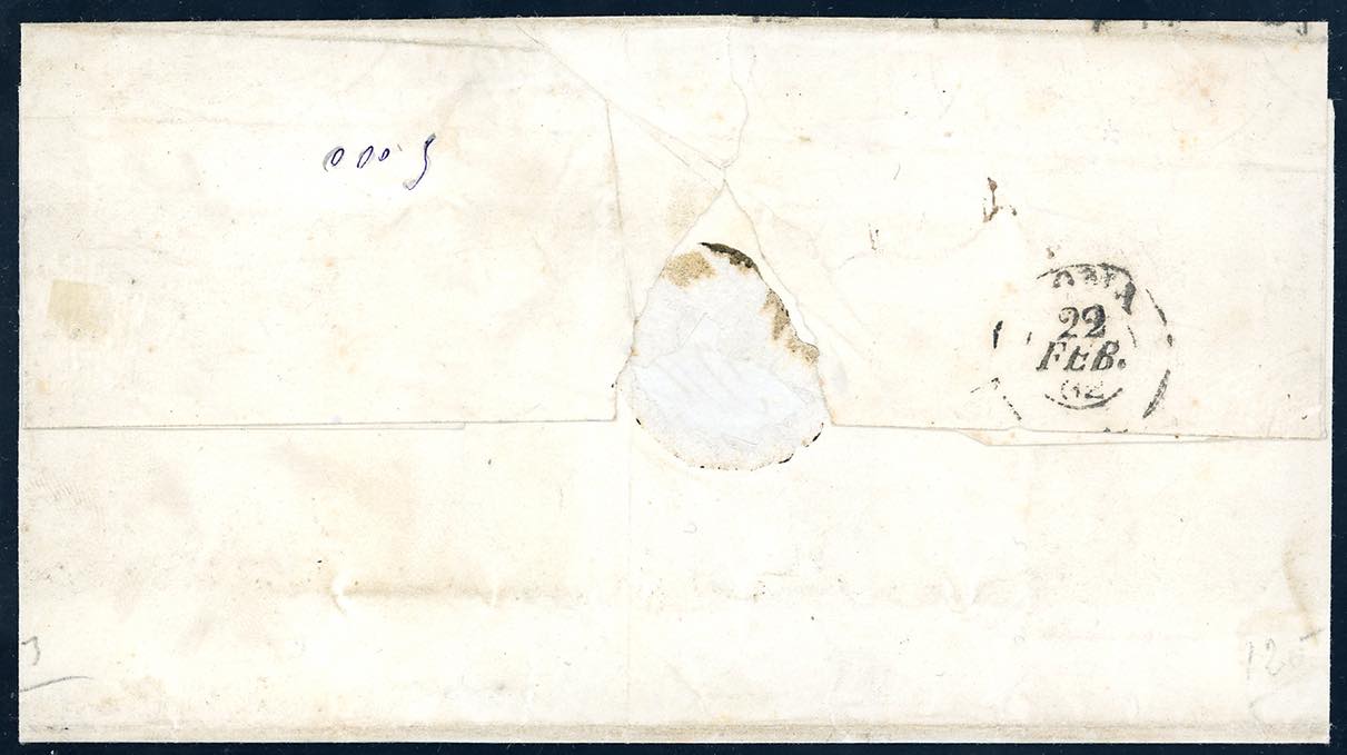 1862 - 40 cent. carminio (22), ottimo stato, in affrancatura mista con 10 cent. bistro oliva IV emissione di Sardegna (14D), coppia orizzontale, tre ottimi margini, corta in basso, su fresca lettera di triplo porto da Buonconvento 20/2/1862 a Roma, tassata 18 baj. Affrancatura mista molto rara. Ferrario.