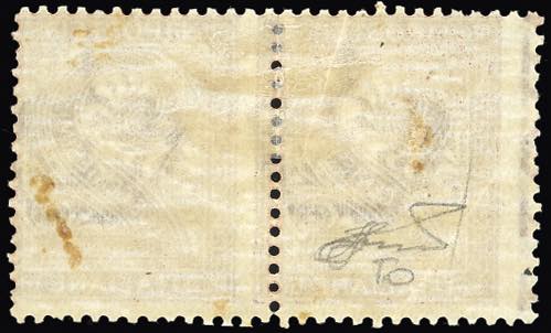 1866 - 2 cent. De La Rue, tiratura di Torino, coppia orizzontale con dentellatura verticale fortemente spostata a sinistra, il primo esemplare con le diciture marginali parzialmente all'interno del francobollo (T15gba,T15gbb), gomma originale, il primo esemplare con lieve piega. Varietà non catalogata allo stato di nuovo, insieme unico. Cert. Ferrario.