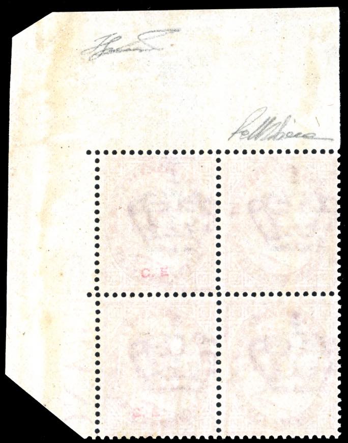 1863 - 40 cent. De La Rue, tiratura di Londra (L20), blocco di quattro, angolo di foglio integrale superiore destro, nuovo, gomma originale integra, perfetto e ben centrato. Splendido ed estremamente raro. Cert. Vaccari, Bolaffi, Diena e Ferrario.