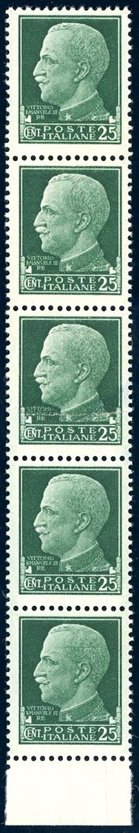 Lotto 1473 - 1929 - 25 cent. Imperiale, striscia verticale di 5, tre ...