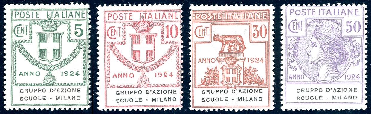 GRUPPO D'AZIONE SCUOLE-MILANO 1924 - Serie completa (38/41), gomma integra, perfetti. Molto freschi.