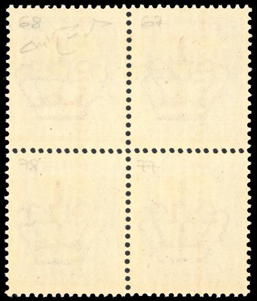 1944 - 1,25 lire, soprastampa fascio rosso in albino, tiratura di Firenze (cat.CEI 64/AFI), blocco di quattro, gomma originale integra, perfetto e molto fresco. Raro, un solo foglio doppio noto. Cert. Raybaudi.