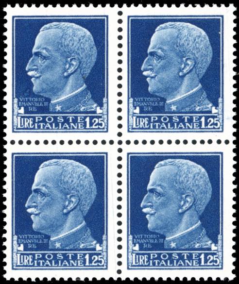 Lotto 1878 - 1944 - 1,25 lire, soprastampa fascio rosso in albino, ...