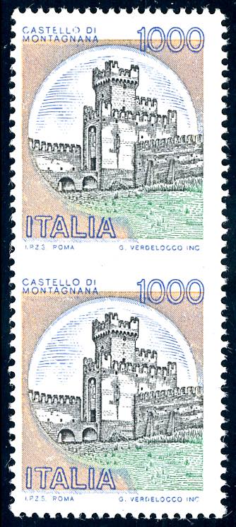 1980 - 1.000 lire Castelli (1527), coppia verticale non dentellata al centro, gomma originale integra, perfetta. Ferrario, R.Diena.