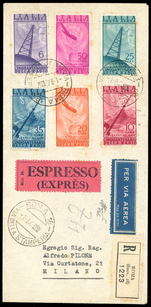 1947 - Radio, serie completa (136/141), perfetti, su aerogramma espresso da Roma 1/8/1947, primo giorno d'emissione, a Milano, bollo ... Leggi tutto