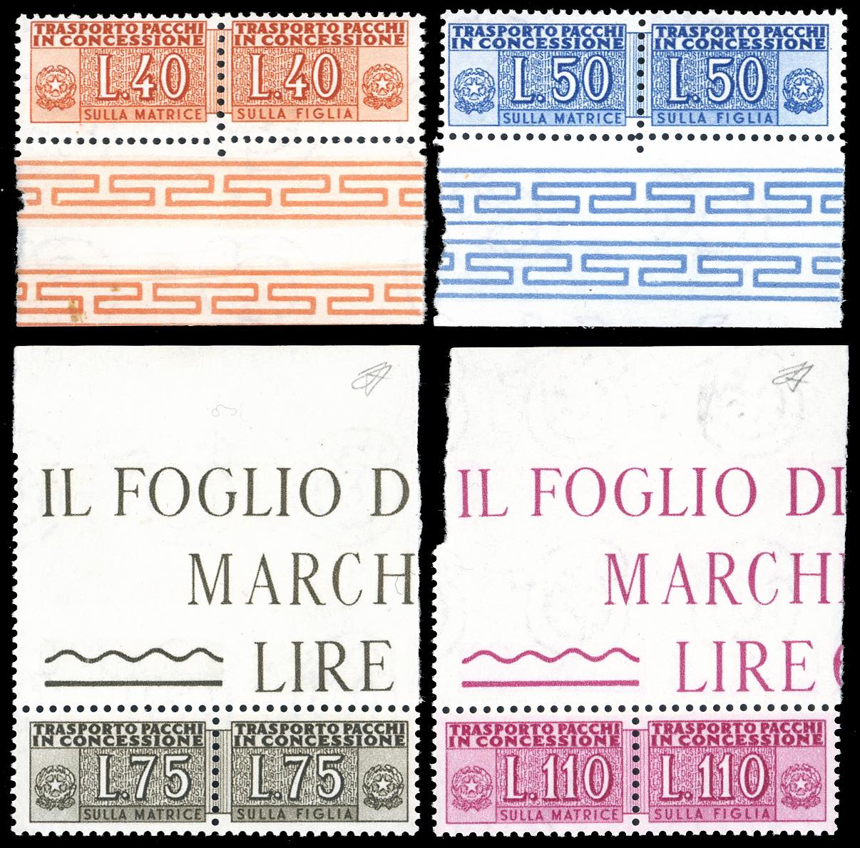 Lotto 2191 - 1953 - Filigrana ruota, serie completa (1/4), bordo di ...
